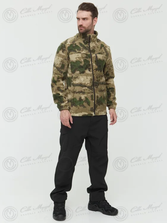 | Толстовка флисовая на молнии, состав 100% полиэстер ( плотностью 260гр/м2 ). Куртка прямого силуэта, с центральной застёжкой на молнию, ветрозащитной планкой, отрезной кокеткой на полочке и спинке, без плечевого шва. Полочки с отрезными бочками, в которых расположены карманы на молнии в швах, на левой полочке – верхний прорезной карман на молнии. Мешковины на полочках цельные. Все молнии в изделии с пуллерами на бегунках. Куртка имеет два внутренних накладных кармана, которые настрочены на мешковины в области нижних карманов. Воротник в толстовке – стойка. Рукава втачанные, одношовные. Низ рукавов и низ куртки от шва стачивания отрезного бочка собраны на эластичную тесьму. |